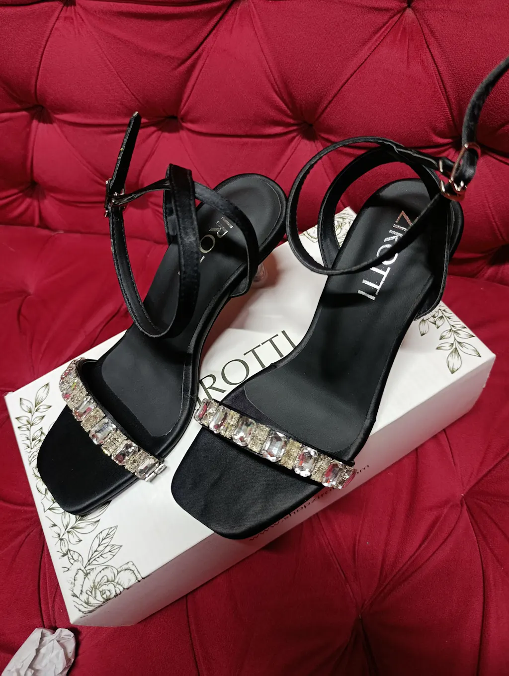 - Crystal detailing on the strap